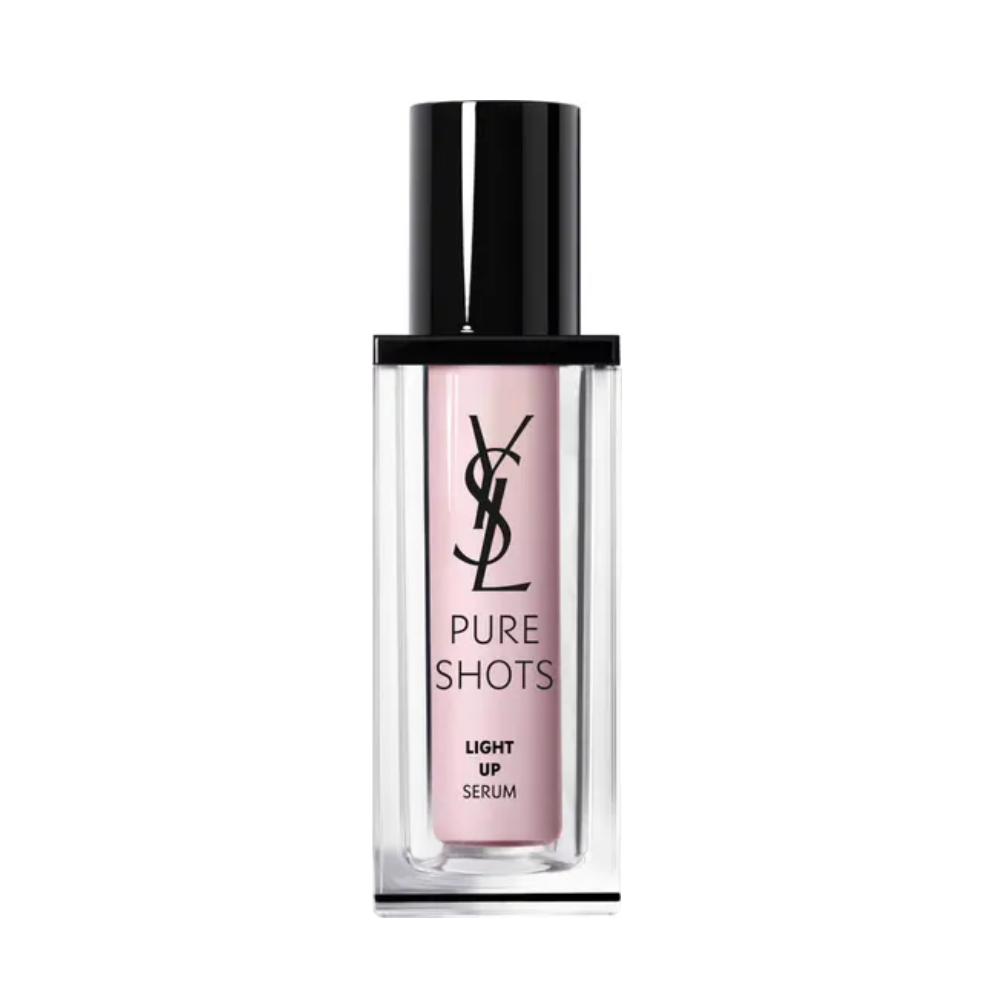 Pure Shots Light up Serum, serum dengan tekstur ringan yang mudah meresap dan mengandung Vitamin Cg dan Marshmallow Flower dari YSL Ourika Garden di Maroko untuk membantu menetralkan efek partikel polusi dan stresor lingkungan. Formula antioksidannya yang menghidrasi membantu menyamarkan bintik hitam dan kemerahan, sehingga kulit tampak lebih cerah dengan rona kulit yang lebih merata.